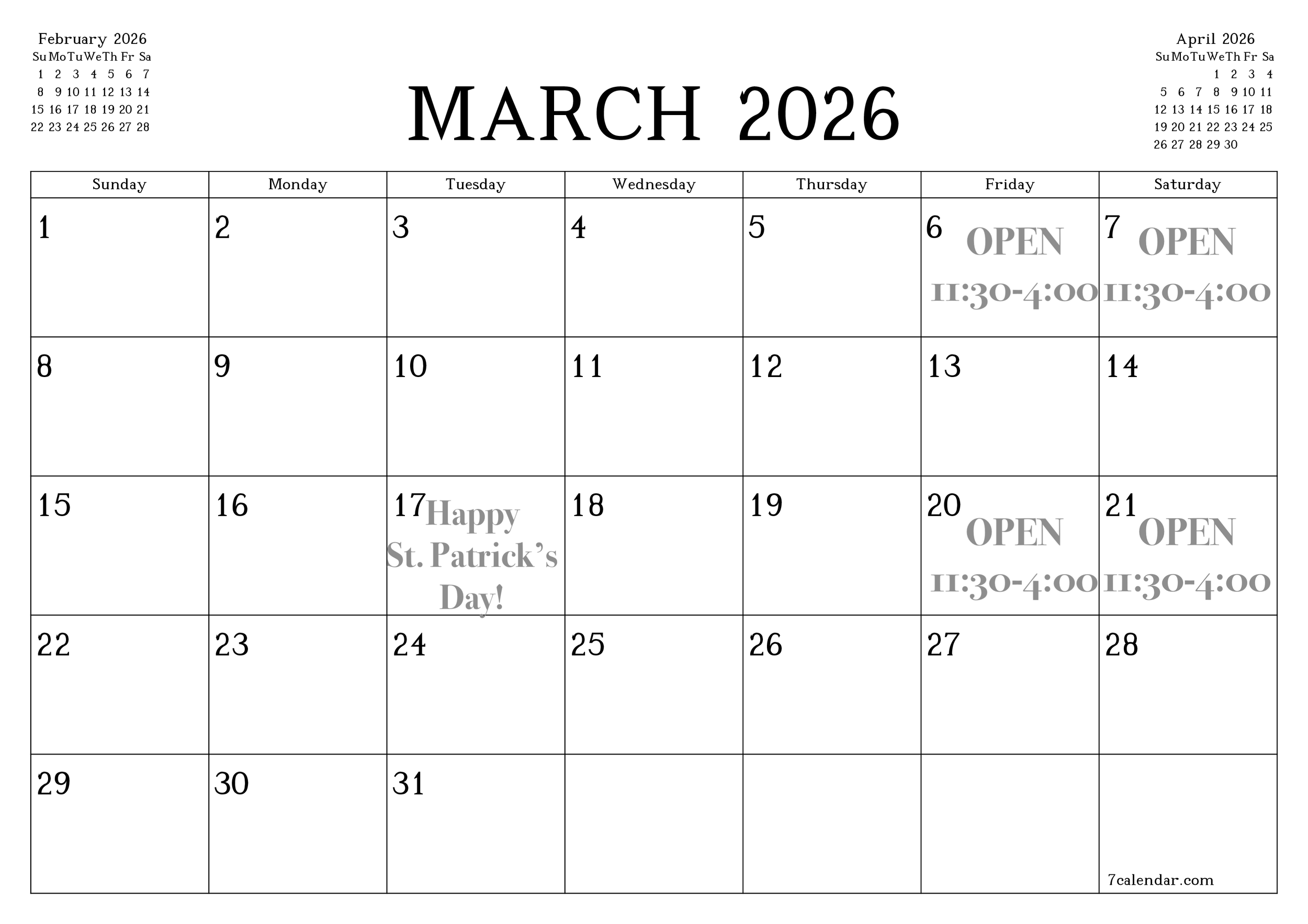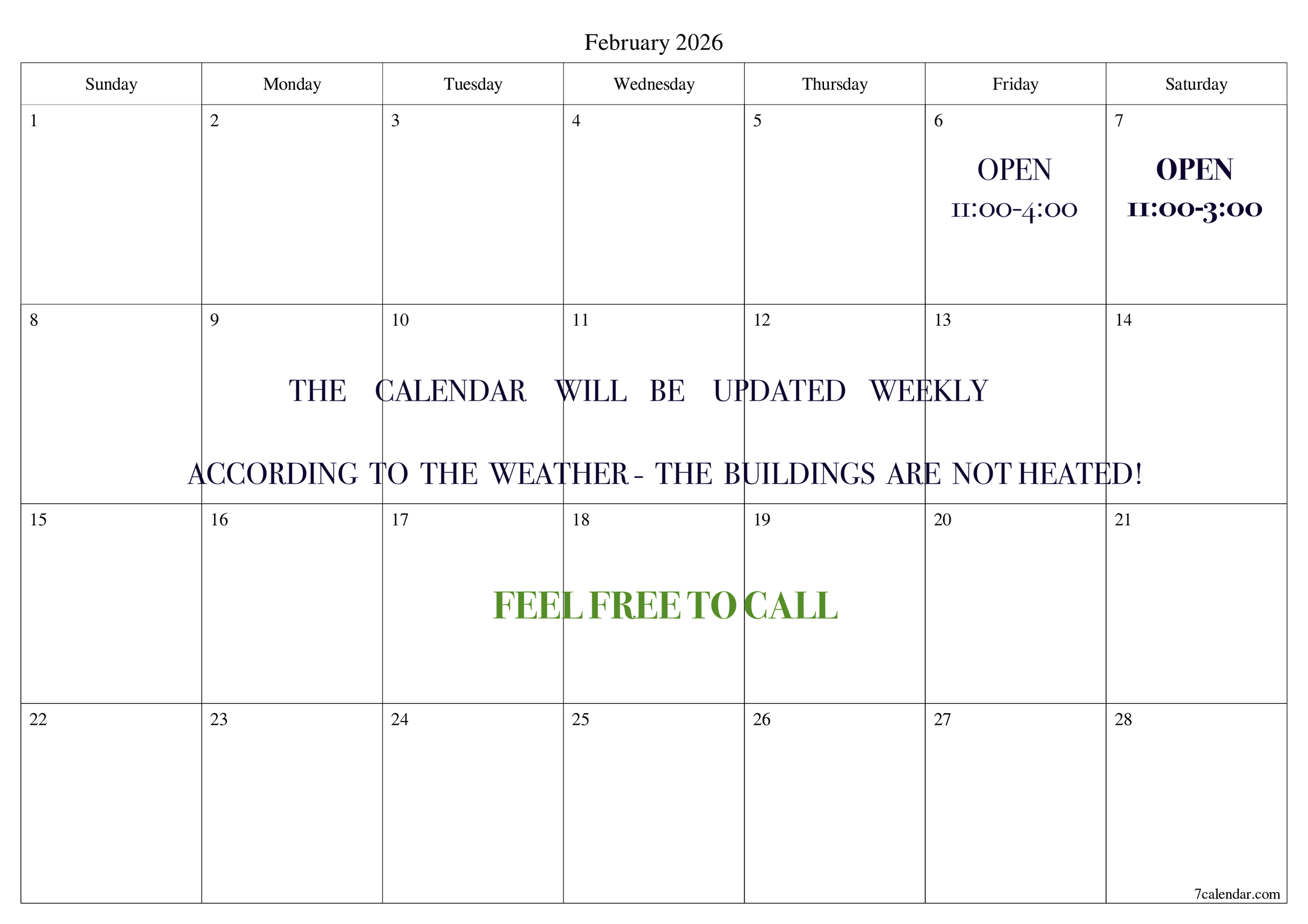 Please check Calendar or Call for an Appointment.